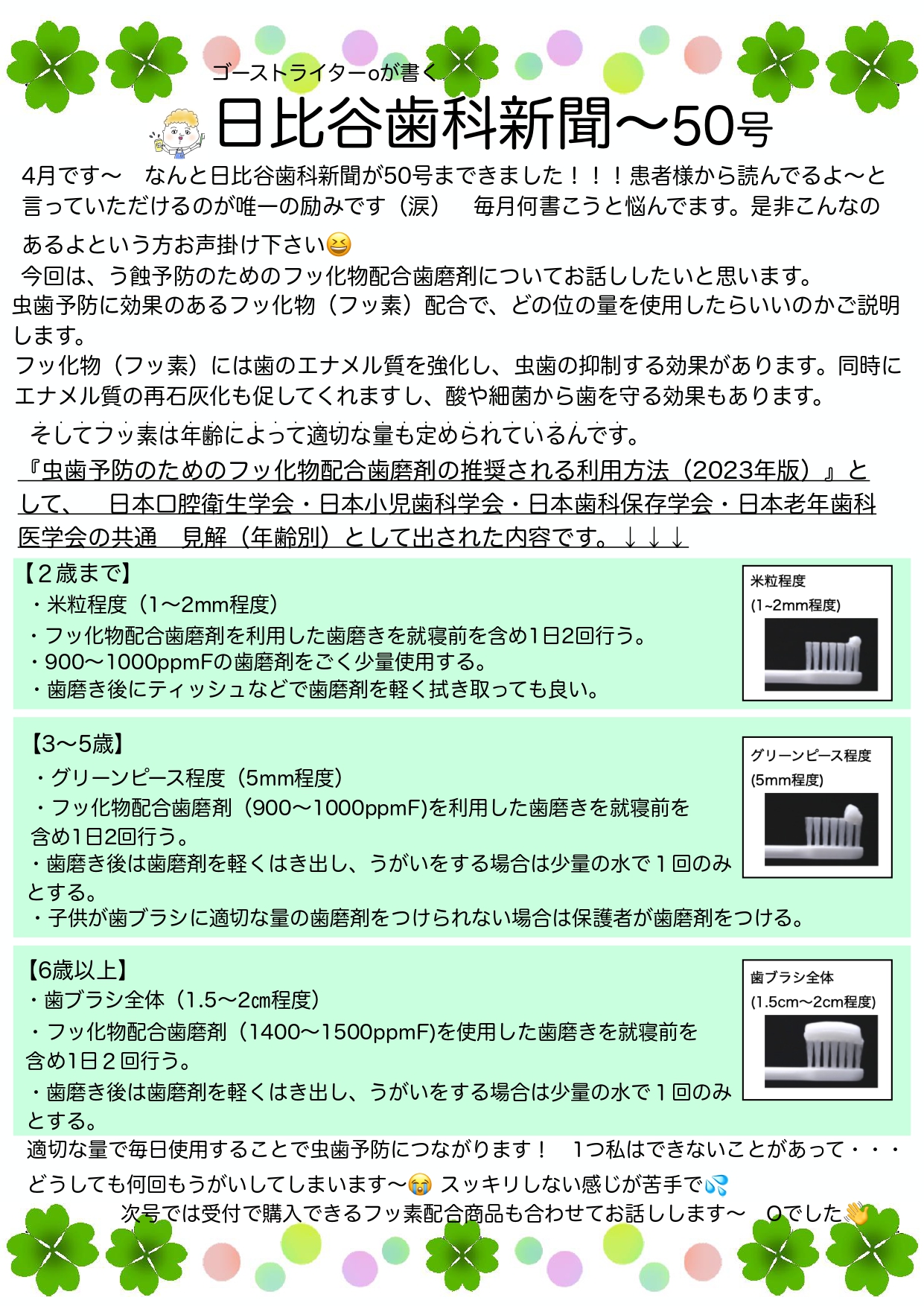 次号は日比谷歯科医院で購入できるアイテムを踏まえながらの号にしたいと思っています